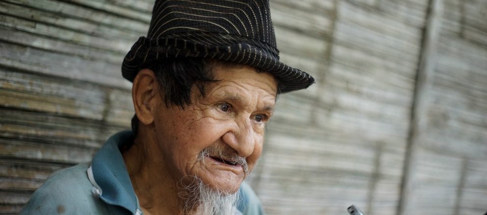 La primera vez que me encontré con Dumas Mora fue en Río Caña (Santa Ana, Manabí) en agosto de 2014. Llevaba dos meses en Ecuador y me recomendaron ir al festival de Tradición Oral. Fui con una amiga desde Quito, y tras la noche en un primer autobús hasta Porto Viejo, otro más pequeño nos dejó en la conocida ‘Casa de los Abuelos’. Prácticamente, al bajar del carro, recuerdo saludar a Dumas y a continuación mi acompañante fue diana de la sátira del ‘viejo’. No acostumbrado a ello, algunas de sus palabras me molestaron. Un recibimiento que, por violento que nos pareciera en su día, nos transportó súbitamente al lugar dónde estábamos. Oír a Dumas era presentir un momento con aura, con esa irradiación que no puede ser duplicada, donde el corazón se desliza a un recoveco entre la naturaleza y la cultura. Cuatro años más tarde, aquella intuición me hace pensar que, durante ese fin de semana, sobre todo viví la tradición oral en esos ratos no programados junto a Dumas, con el que será recordado como un auténtico juglar de nuestro tiempo.