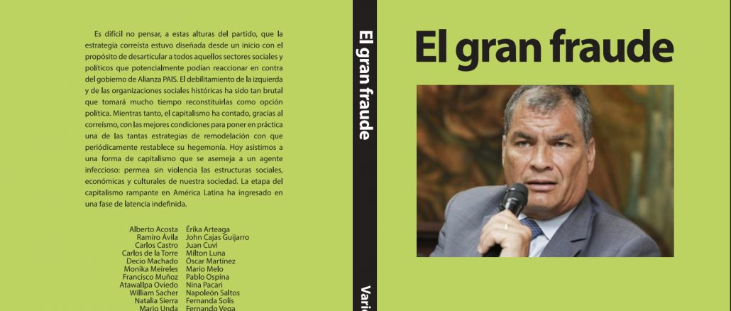 Esta semana se realizará el lanzamiento de la obra El Gran Fraude, el tercer libro de una trilogía que comenzó con El Correísmo al Desnudo y prosiguió con La Restauración Conservadora del Correísmo. Esta obra cuenta con la participación de varios autores, la mayoría de ellos vinculados a organizaciones sociales de muy diverso tipo en Ecuador.
