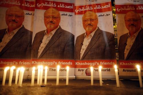 En un giro radical Arabia Saudita reconoció que el asesinato de Jamal Khashoggi fue premeditado. En tanto, Salah, hijo del periodista, abandonó el país, luego de que le levantaron una prohibición para viajar, y la UE pidió un embargo de armas a Riad. La imagen, ayer afuera del consulado saudita en Estambul, donde se organizó una vigilia en memoria del comunicador. Foto Ap.