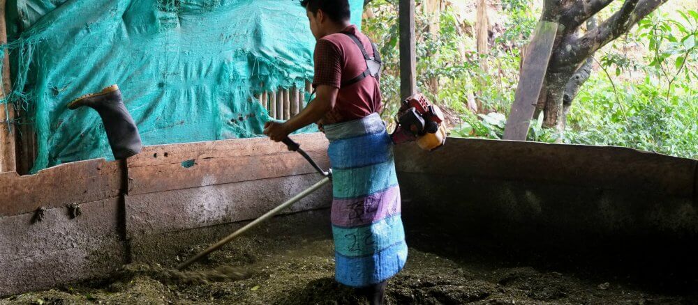 El segundo es echarle cal y cemento para que la hoja se pele y suelte más fácil el químico necesario para la pasta.