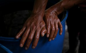 “Claro que tiene que hacer daño (el olor) porque esto es muy fuerte, nos da carraspera en la garganta, gripes, pero uno está tomando vitaminas, alguna cosita para evitar mayores problemas. Hasta ahora no hemos sabido que cause enfermedades graves, pero de pronto con los años sí”, me dice con acento golpeado y mientras pide que no le tome fotos, excepto a sus manos.