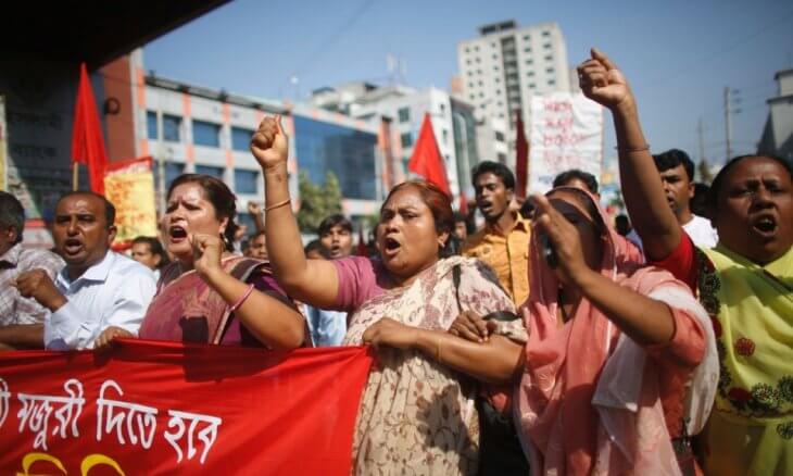 A finales de 2018 comenzó en Bangladesh una huelga masiva, acompañada de una manifestación y una ocupación de la calle, prolongándose hasta el mes de enero, particularmente en Savar, un importante polígono industrial de un suburbio de la capital. Fue allí donde, en 2013, los edificios de Rana Plaza, que albergaban muchos talleres de producción textil, se derrumbaron, dejando más de 1.130 personas muertas y un gran número de heridos. Hubo bloqueos de carreteras en varias localidades: Shiurapara, Mirpur, Ashulia…