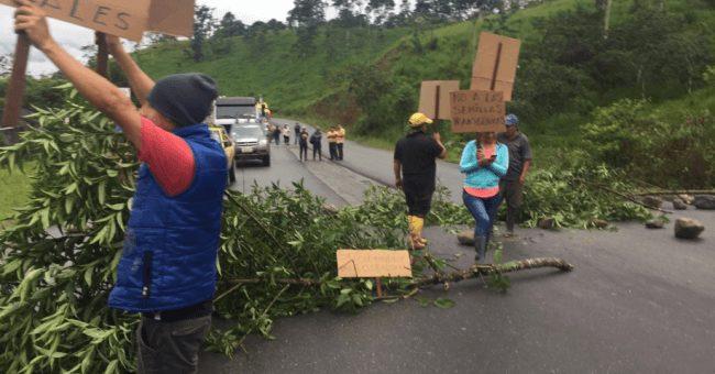 En Zamora Chinchipe, en la vía El Triunfo – El Dorado, también obstaculizan la vía, un grupo de personas en reclamo a el resunto ingreso de semillas transgénicas a su zona. En las vías Guayaquil – Manabí, Manabí – Quito, en el sector de Flavio Alfaro; y en la vía Babahoyo – Montalvo, también se registran protestas con quema de llantas y bloqueo al tránsito vehicular.