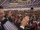 En las horas tras los sismos, miles de residentes se reunieron en un edificio gubernamental en el condado de Rong para protestar contra el fracking en las ondulantes colinas y valles.
