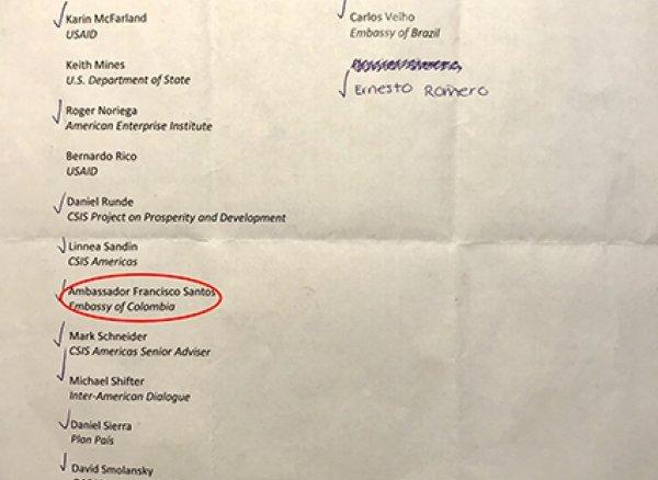 Blumenthal obtuvo una lista de verificación de participación en la mencionada mesa redonda denominada ‘Evaluación del uso de la fuerza militar en Venezuela’, organizada por el mencionado centro con sede en Washington D.C., que incluye a varios funcionarios y militares de EE.UU. y Sudamérica.