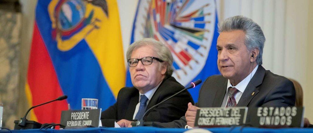 Moreno hizo esas declaraciones durante un discurso ante el Consejo Permanente de la OEA, la primera alocución de un presidente ecuatoriano ante ese organismo en 17 años.