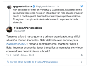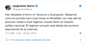 Luego de la masacre cometida en recientes horas donde un comando armado asesinó a 14 personas que se encontraban en una fiesta privada en Minatitlán, Veracruz, el periodista y productor, Epigmenio Ibarra junto con otras figuras de la izquierda han señalado a lo queda del viejo régimen del PRI y PAN como responsables de esta oleada de violencia, la cual podría tener como objetivo desestabilizar el Gobierno de México encabezado por el Presidente Andrés MAnuel López Obrador.