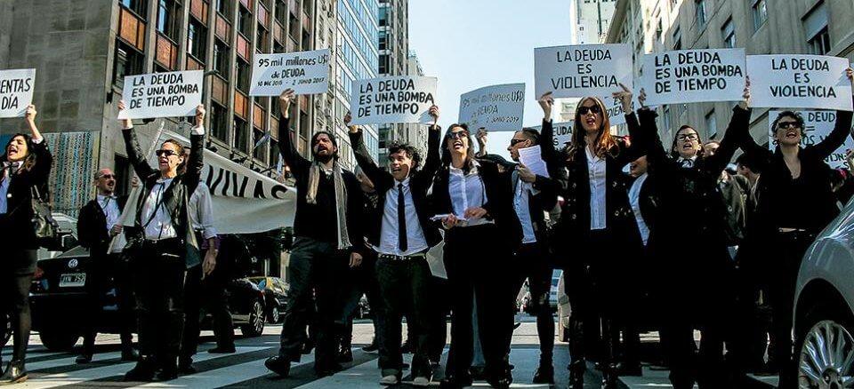 (…) Por otro lado, lo que nos interesa poner de relieve es la posibilidad de desobediencia a la deuda y, en particular, las formas de desacato práctico que se vienen impulsando desde el movimiento feminista (…). Nos parece decisivo poder afirmar que no hay una subjetividad del endeudamiento que pueda universalizarse ni una relación deudor-acreedor que pueda prescindir de sus situaciones concretas y en particular de la diferencia sexual, de géneros, de raza y de locación, porque justamente la deuda no homogeniza esas diferencias sino que las explota. Es central (y no un rasgo secundario) el modo en que el dispositivo de la deuda se aterriza en territorios,economías, cuerpos y conflictividades diversas. En este sentido, sacarla del clóset es practicar un gesto feminista sobre la deuda: es desconfinarla, desprivatizarla, y ponerle cuerpo, voz y territorio y; desde ahí, investigar los modos de desobediencia que se están experimentando. Por eso hay un tercer movimiento (luego del desconfinamiento y su corporización) que es inseparable de ese gesto feminista: conspirar para el desacato de la deuda. No se trata sólo de una perspectiva analítica, sino que proponemos una comprensión que hace parte de un programa de desobediencia. Sacar del clóset a la deuda es entonces un movimiento político contra la culpa, contra la abstracción de la dominación que quieren ejercer las finanzas y contra la moral de buenas pagadoras con que se propagandiza a los cuerpos feminizados como sujetxs responsables predilectos de la obligación financiera.