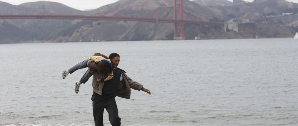 Para empezar, el protagonista lo que desea es trabajar como bróker en la Bolsa y comprarse un coche descapotable deportivo, pero no a la manera del cínico personaje de Michel Douglas en el Wall Street de Oliver Stone, sino al servicio del Bien y de la Prosperidad general. De hecho, todos los hombres enriquecidos que conoce y que ya trabajan en el medio son amables, respetuosos, enrollados y, desde luego, muy receptivos al talento y el esfuerzo ajeno, mientras que los pobres que aparecen en la película son agresivos, egoístas y hasta ladrones –sobre todo los hippies, escoria trasnochada de la sociedad. El bueno de Will tiene clarísimo que a los afortunados hay que hacerles la pelota (iba a escribir “lamerles el culo”…) hasta la saciedad, llamarles “señor” y hacerles pequeños favores; los amigos, la familia, el entorno inmediato, en cambio, no son de fiar, esos sólo te ponen chinitas en los zapatos y no está dispuestos a luchar por nada. De las cuatro mujeres que aparecen en la película, todas quedan rematadamente mal, y su propia esposa le abandona de modo inexplicable y no vuelve a interesarse por él ni por su hijo común. Por dos veces Will se refiere a la obligación de pagar impuestos como una manera en la que el estado te “mete la mano en el bolsillo”, y en general parece aceptar tranquilamente el tener que pelear por su dignidad sin ayuda social alguna, el mundo es como una olla a presión donde te encuentras totalmente desamparado a no ser que te decidas a formar parte de las burbujitas que ascienden aun al precio de tu vida. Pero no se crea que Will lo hace por egoísmo o por ambición, sino por su hijo de cinco años: otro acierto del guión. Incluso llega a entrar con él en un templo donde otros negros cantan góspel y ambos se funden en un abrazo emocionado –ya se sabe que EEUU es el país donde hasta los dólares creen en Dios, aunque sea el Dios de los negocios: In God We Trust