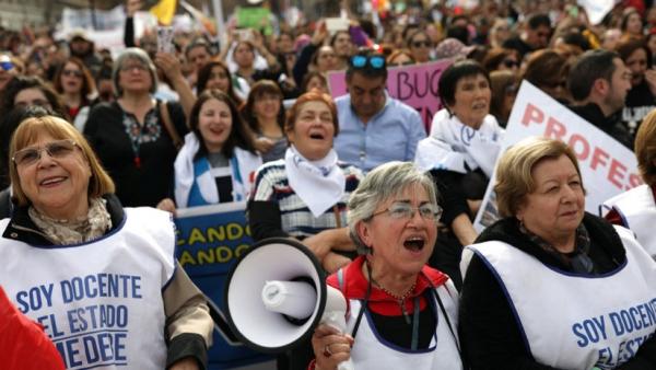 Los docentes, entre otras cosas, reclaman soluciones a los problemas de infraestructura de los colegios, el pago de bonos a educadores en edad de jubilación, una solución a la deuda histórica que tienen con el sector y el rechazo a la modificación curricular.