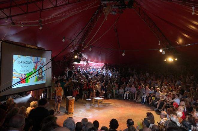 En la audiencia, en el escenario o en el bar, nos encontramos con todo el pequeño mundo de la izquierda de la «izquierda». Intelectuales, activistas y políticos. Entre los primeros, los economistas Thomas Piketty y Julia Cagé, el ensayista Gael Brustier pero también el historiador Dominique Vidal, el filósofo Etienne Balibar, los directores de las revistas Regards y Politis. Del sector sindical: Philippe Martínez, el secretario general de la CGT, sin que sirva de precedente. Del lado asociativo: representantes del Comité en defensa de Adama Traoré o las Marchas por el Clima, miembros de Attac como Pierre Khalfa o Aurélie Trouvé. “Chalecos Amarillos”: un manifestante de las plazas se deslizaron en la carpa, y Geneviève Legay envía un mensaje de vídeo.