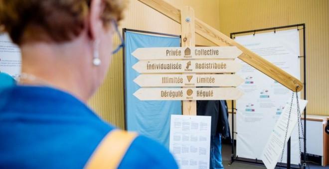 Las alternativas tienen ojos y cara al finalizar el recorrido, ya que más de una decena de asociaciones ocupan un espacio en el que explican cómo funcionan sus propuestas. Entre ellas, entidades como Zinne, una moneda alternativa local creada hace unos meses, Pro Vélo, que promueve el uso de la bicicleta como medio de transporte, y organizaciones que denuncian la explotación de trabajadores en el Sur.