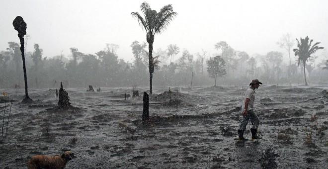 Así luce el suelo de la Amazonia en Porto Velho tras el paso de la deforestación y los incendios. / AFP