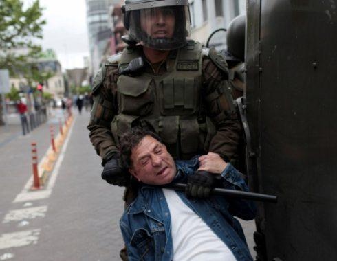 En Chile, el conservador Sebastián Piñera ha dejado claro que cualquier protesta civil, por mínima que sea, será reprendida con el uso de la fuerza. Los jóvenes chilenos que están en las calles protestando por el alza al transporte público (uno de los más caros de sudamérica), han sido recibidos con golpes, patadas, detenciones violentas y disparos a quemarropa. Un video muestra a una estudiantes con un disparo en la entrepierna.
