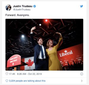 Según los resultados oficiales, con el 99,6 por ciento del escrutinio procesado, los liberales de Trudeau consiguieron 157 de las 338 bancas en juego en la Cámara de los Comunes. En el Parlamento saliente, el primer ministro contaba con una cómoda mayoría absoluta de 177 escaños. Tras conocerse los resultados, Trudeau recalcó su mensaje de optimismo: «Es mucho más lo que no nos separa» y aseguró que gobernaría para cada uno de los que no le hayan votado también.
