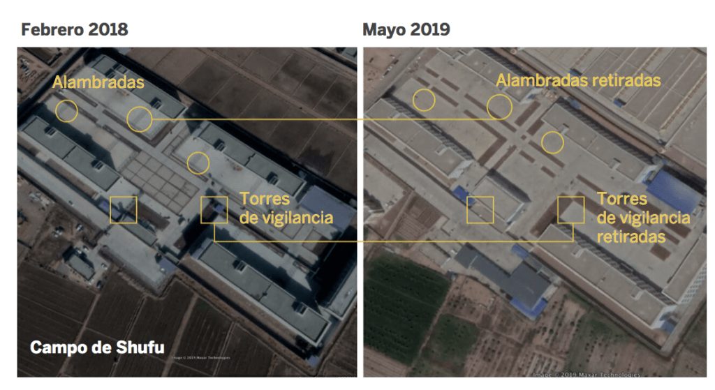El Gobierno chino empezó a admitir la existencia de estos centros. Ante la presión global, tuvo que retocar los campos. Un ejemplo de ello es el centro de Shufu, en la prefectura de Kashgar. Aquí, tras el eco de las denuncias de Zhang, se desmantelaron las torres de vigilancia y la alambrada que rodeaban las naves donde pasaban el día los internados.
