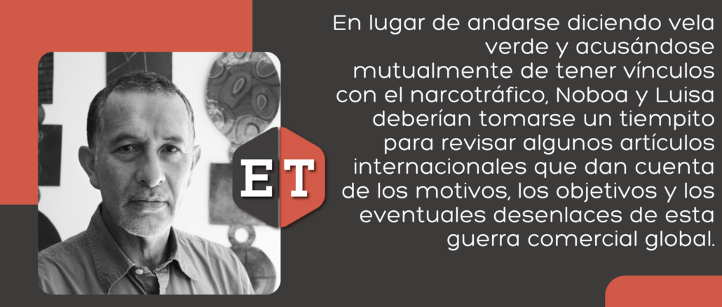 En lugar de andarse diciendo vela verde y acusándose mutualmente de tener vínculos con el narcotráfico, Noboa y Luisa deberían tomarse un tiempito para revisar algunos artículos internacionales que dan cuenta de los motivos, los objetivos y los eventuales desenlaces de esta guerra comercial global. Al menos, para no meter la pata. Ya hay países donde los impactos han sido brutales.