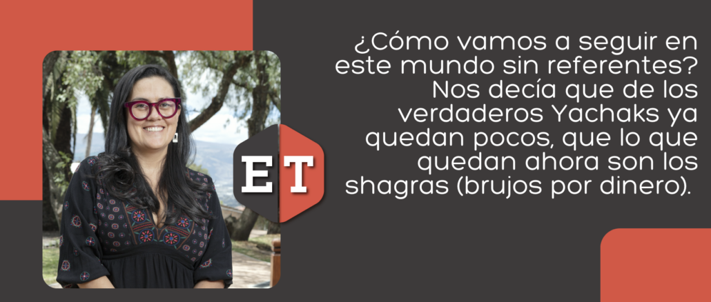¿Cómo vamos a seguir en este mundo sin referentes? Nos decía que de los verdaderos Yachaks ya quedan pocos, que lo que quedan ahora son los shagras (brujos por dinero). Usted Achakaspi fue medicina: para mí, para mi hijo de 15 que conoció hace tres años, para mi camino de no forzar en las comunidades la creencia absoluta con la que yo vengo, de aprender a escuchar (eso me falta largo todavía) y aprender a acompañar. ¿Qué vamos a hacer sin usted? ¿Qué vamos a hacer caperuzo con espíritu de lobo guerrero?