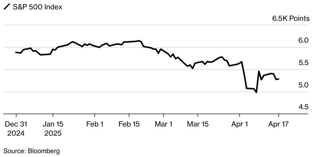 El índice general bajó casi un 10% desde que Trump anunció aranceles radicales a la mayoría de los socios comerciales de EE. UU., solo para suspender muchos de ellos una semana después. Ha caído un 16% desde su récord de febrero. Nvidia Corp. se desplomó un 5,3%, Delta Air Lines Inc. cayó un 4,2% y Constellation Energy Corp. cayó un 8,1%.
