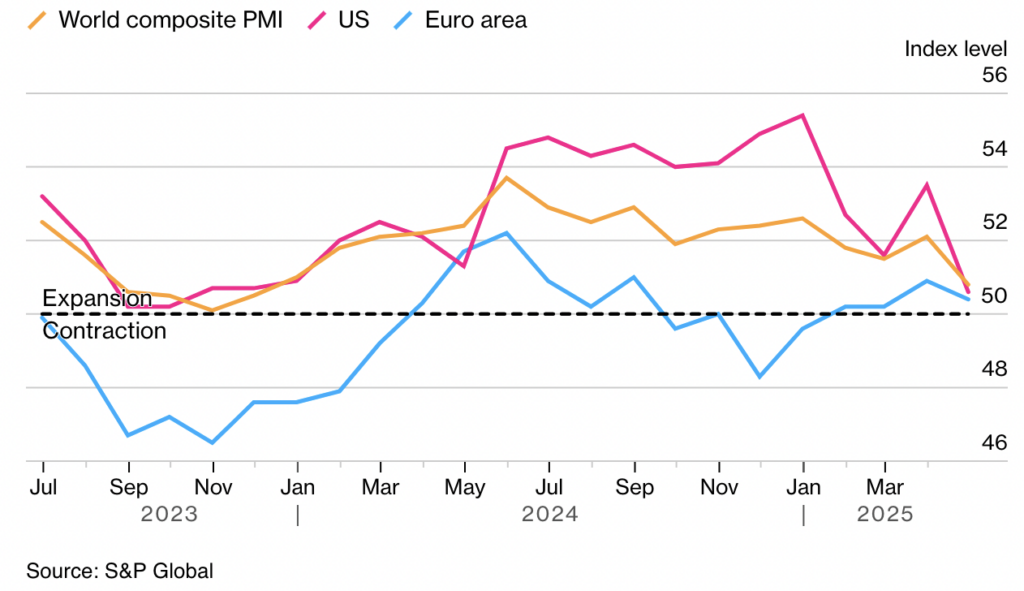 Con las cifras del PMI de abril apuntando ya a una desaceleración del crecimiento global a su nivel más bajo en 17 meses, el panorama combinado de los eventos e informes de la semana mostrará la magnitud del nerviosismo que aún resuena tras el intento de Trump de reestructurar el sistema comercial global.