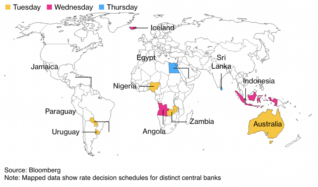 Decisiones sobre las tasas de interés de los bancos centrales esta semana