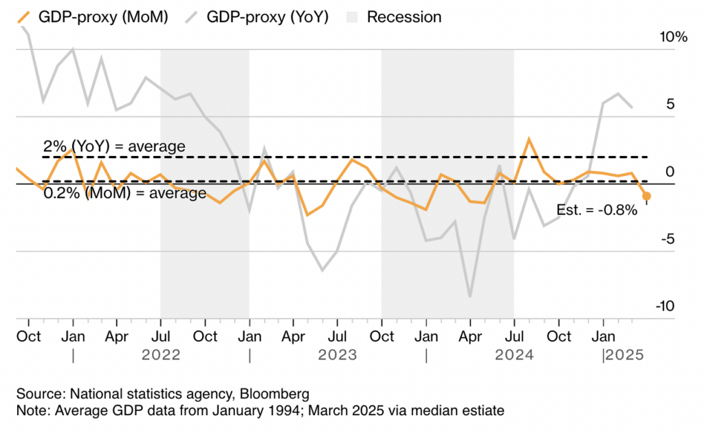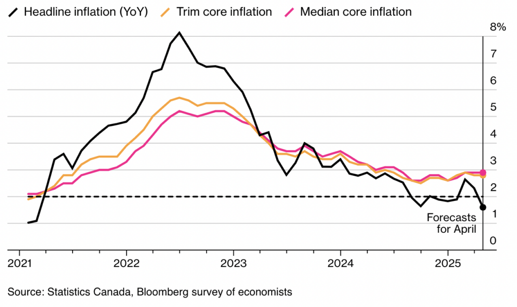 Los débiles datos económicos han impulsado a los operadores en swaps a un día a aumentar las apuestas sobre un recorte de tipos en junio a casi el 70%. Las ventas minoristas de marzo podrían reflejar la prisa de los consumidores por comprar coches antes de que entraran en vigor los aranceles, mientras que la estimación preliminar para abril podría mostrar una contracción del gasto.