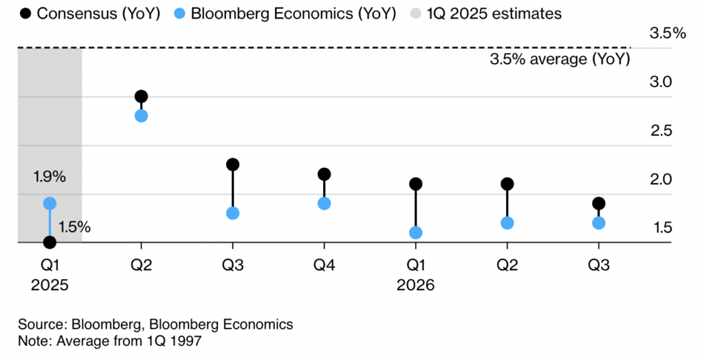 Las estimaciones del PIB del primer trimestre son inferiores a las del cuarto trimestre de 2024