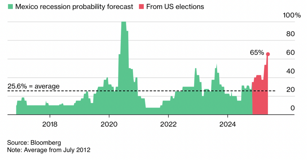 La probabilidad de recesión de un año en México aumenta al 65 %