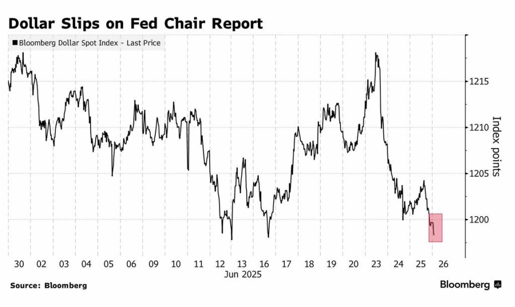 El indicador de Bloomberg sobre el dólar cayó a su nivel más bajo en tres años después de que el Wall Street Journal informara que Trump podría anunciar el reemplazo de Powell en septiembre u octubre. Los operadores interpretan la noticia como una señal de que los recortes de tasas anticipados son cada vez más probables, dado que Trump ha instado repetidamente a Powell a reducir los costos de los préstamos.