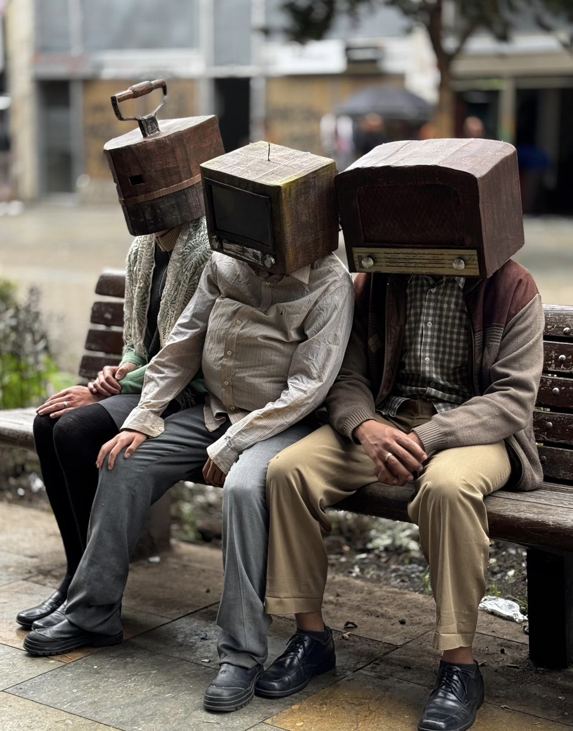La pieza que ha tenido versiones anteriores en Quito, Buenos Aires y Bogotá es un homenaje vivo a los aparatos olvidados que ya casi nadie utiliza: Una Plancha de carbón, un televisor en blanco y negro, un radio am, un reloj de pared.