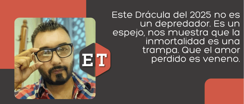 Así que no me engaño: este Drácula del 2025 no es un depredador, es un espejo. Nos muestra que la inmortalidad es una trampa. Que el amor perdido es un veneno más duradero que cualquier cruz. Que a veces el verdadero terror no está en la sangre, ni en los colmillos, sino en la imposibilidad de cerrar un duelo. Y quizás lo más perturbador no es verlo chupar sangre, sino verlo negarse a beber. Jugar a morirse de a poco. Resignarse a la espera. Porque nos recuerda algo brutal: no necesitamos colmillos para convertirnos en sombras. Basta con haber amado una sola vez para quedar condenados al vacío.