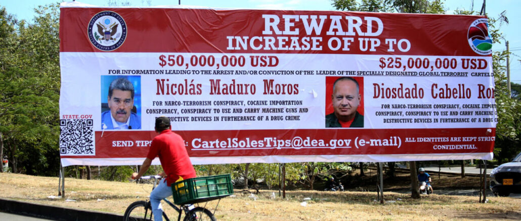 Las autoridades estadounidenses sostienen que el Cartel de los Soles, cuyo nombre supuestamente proviene de las insignias que lucen los generales, es un grupo compuesto principalmente por militares venezolanos desde los años noventa. Sin embargo, las averiguaciones de la Administración de Control de Drogas (DEA) no se oficializaron hasta marzo de 2020, durante el primer mandato de Trump. Fue en ese momento cuando el Departamento de Justicia reconoció formalmente la existencia del grupo, al que aseguran que encabezan el presidente venezolano, Nicolás Maduro, y su titular de Interior, Diosdado Cabello.
