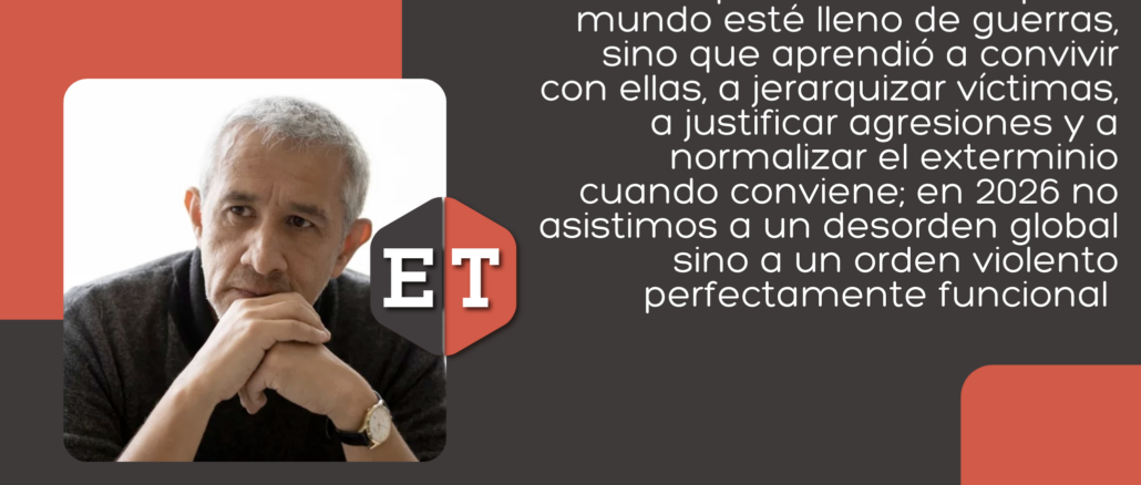 Lo inquietante no es que el mundo esté lleno de guerras, sino que aprendió a convivir con ellas, a jerarquizar víctimas, a justificar agresiones y a normalizar el exterminio cuando conviene; en 2026 no asistimos a un desorden global sino a un orden violento perfectamente funcional, donde las potencias administran conflictos, los medios administran silencios y el derecho internacional sobrevive como retórica, mientras la guerra —esa vieja herramienta del poder— vuelve a mostrarse como lenguaje principal de la política mundial.